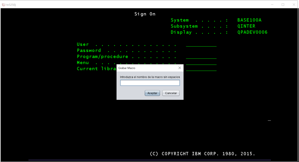 Y es necesario proporcionar la información siguiente para conectarse al servidor AS400/5250: