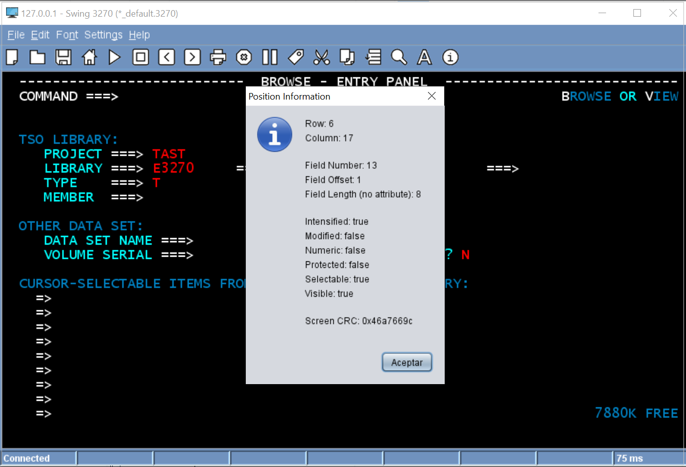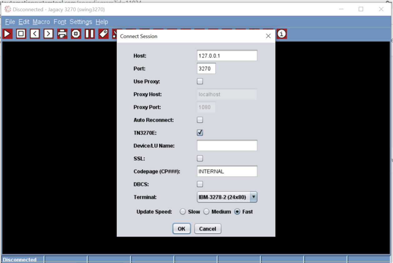 Hay que tener descargado el ejecutor: “jagacy3270-5.4.0.jar”. En el proceso de inicialización es necesario proporcionar la siguiente información para que se pueda establecer la conexión con el servidor Host 3270.