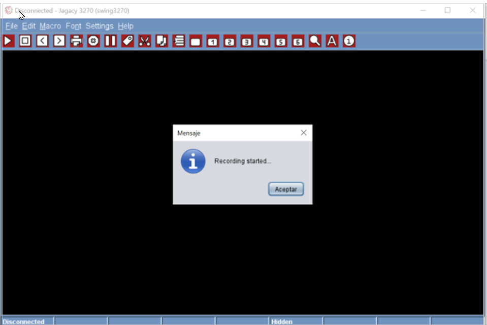 Como ya se ha mencionado en la Introducción, con este Adaptador, se pueden generar macros que permiten automatizar pruebas en sistemas “transformados a HTML”. Vamos a explicar, como se realiza la grabación de una serie de acciones de teclado, para después poder ejecutarlas.