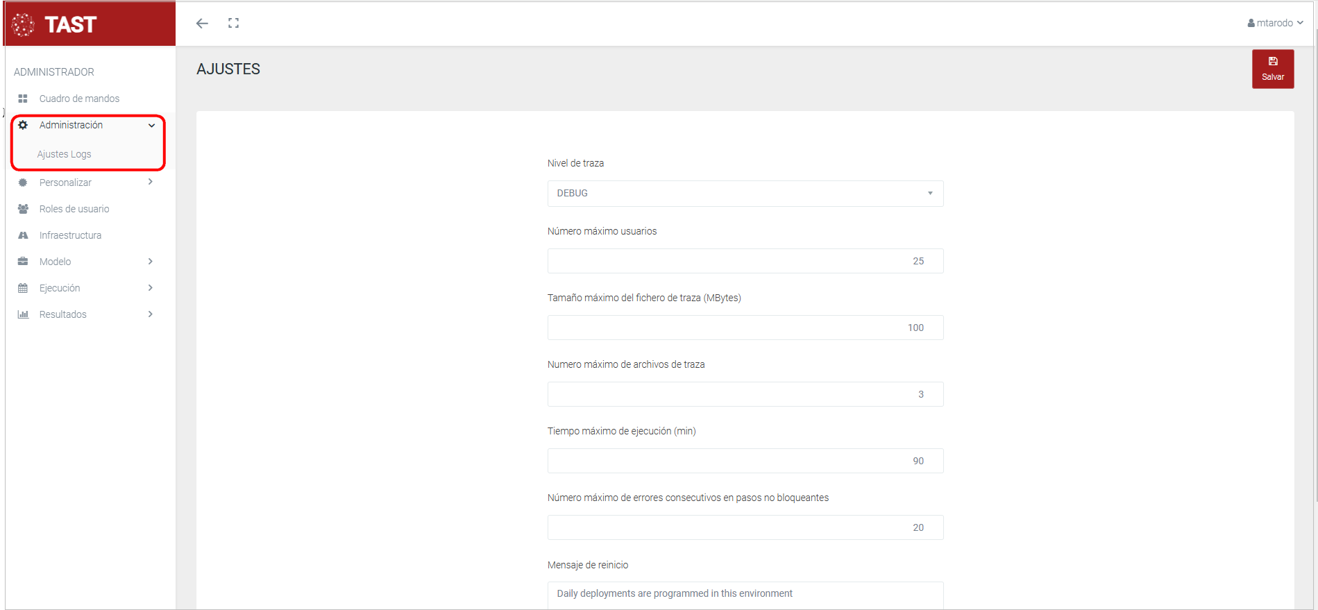 • Tamaño máximo del fichero de traza (Mbytes): 1000 MBytes máximo.