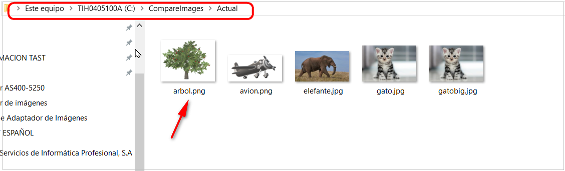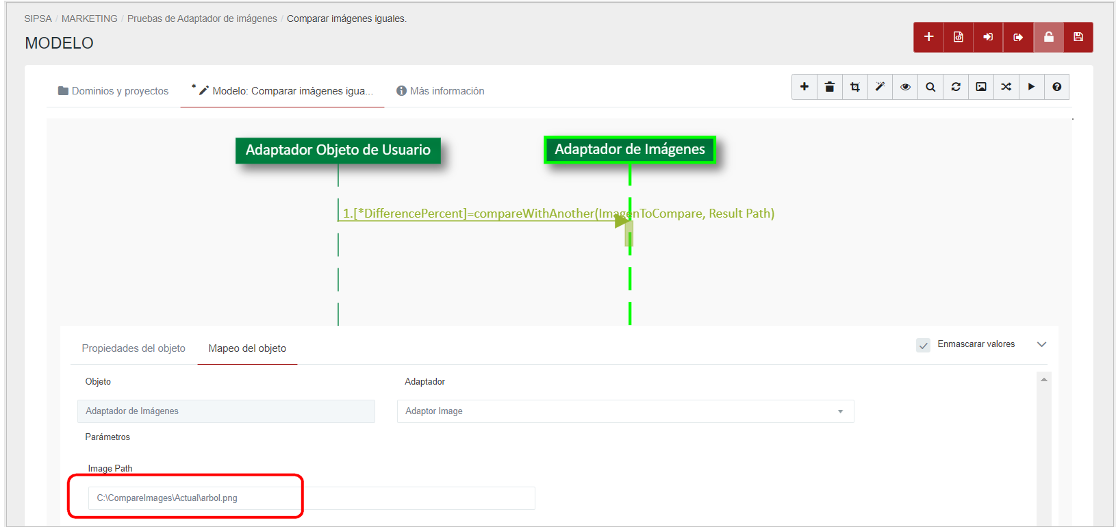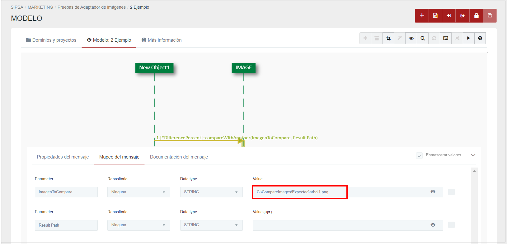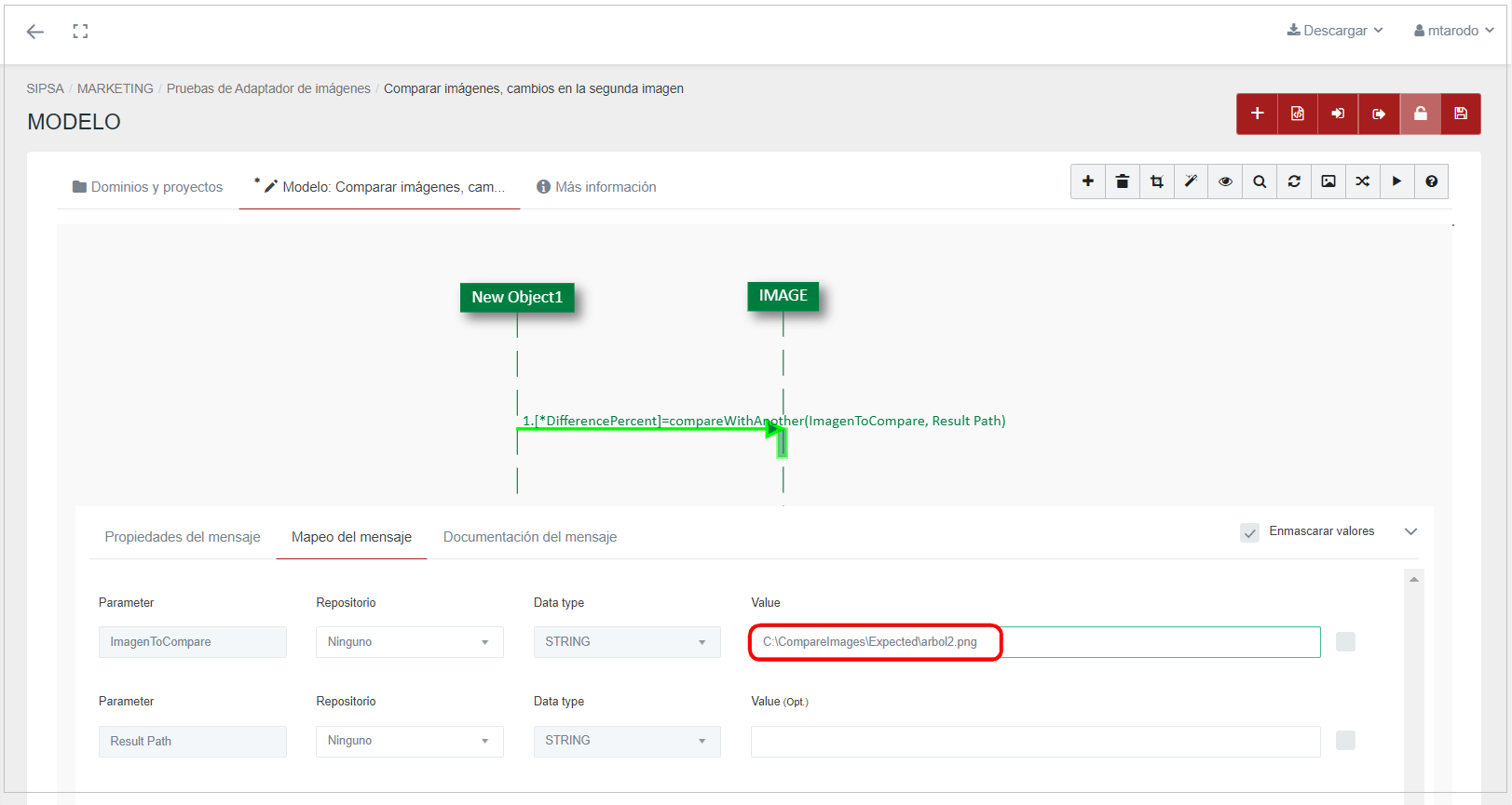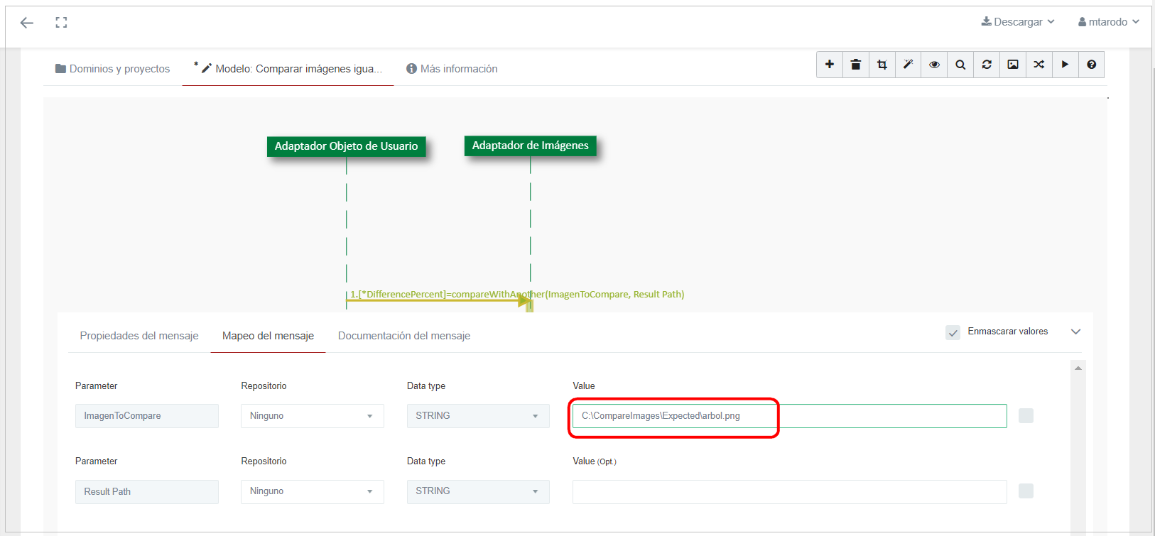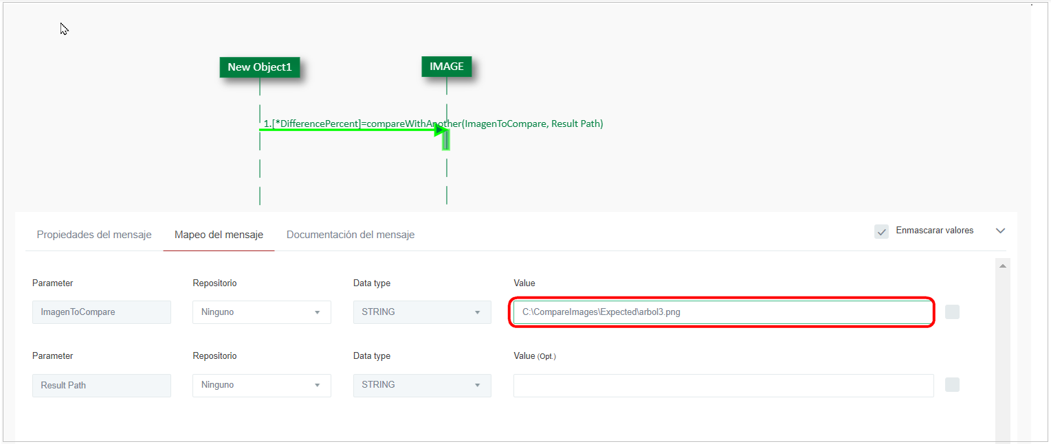 ImageToCompare: ruta de la imagen a comparar. Es obligatorio.
