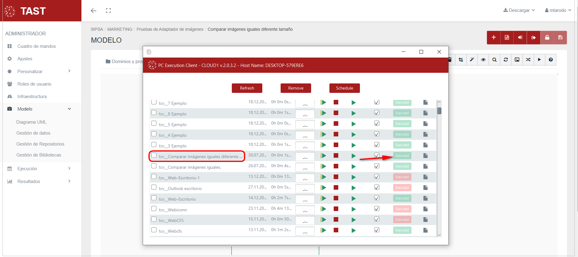 Ejecutamos el caso de prueba: