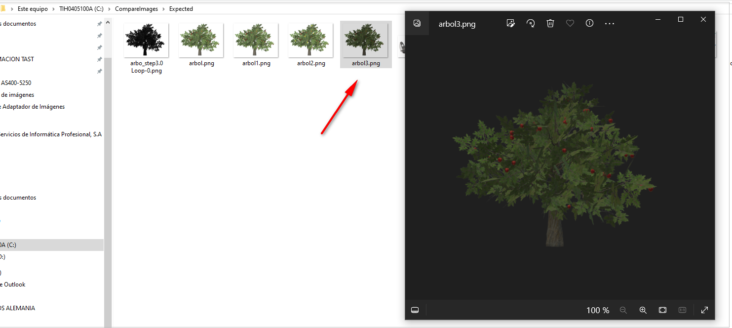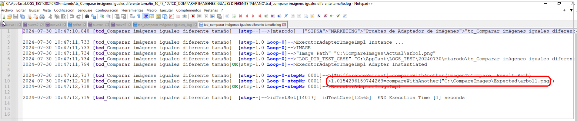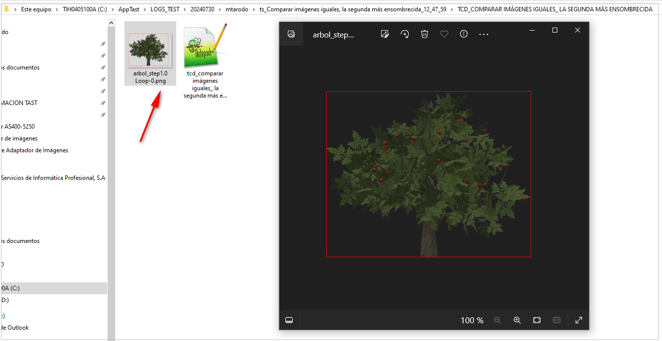 Y si a continuación, abrimos la carpeta con los logs, nos dice el porcentaje de la diferencia. Pero al ser la misma imagen, la diferencia que encuentra no es muy alta. Es del: