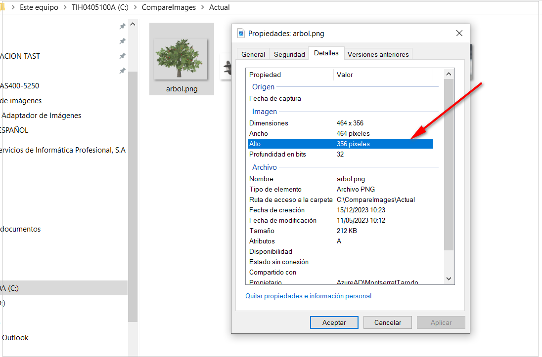 Son exactamente la misma imagen, pero esta segunda, si abrimos la pestaña de Detalles, tiene el siguiente tamaño: