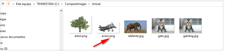 Si comparamos dos imágenes completamente distintas la diferencia empieza a ser del 20 %. Utilizando la misma imagen del árbol, elegimos para comparar, la imagen de un avión: