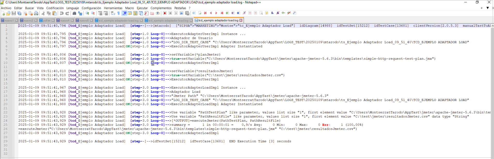 Hemos diseñado este caso de prueba utilizando dos Adaptadores: el Adaptador Objeto de Usuario y el Adaptador LOAD.