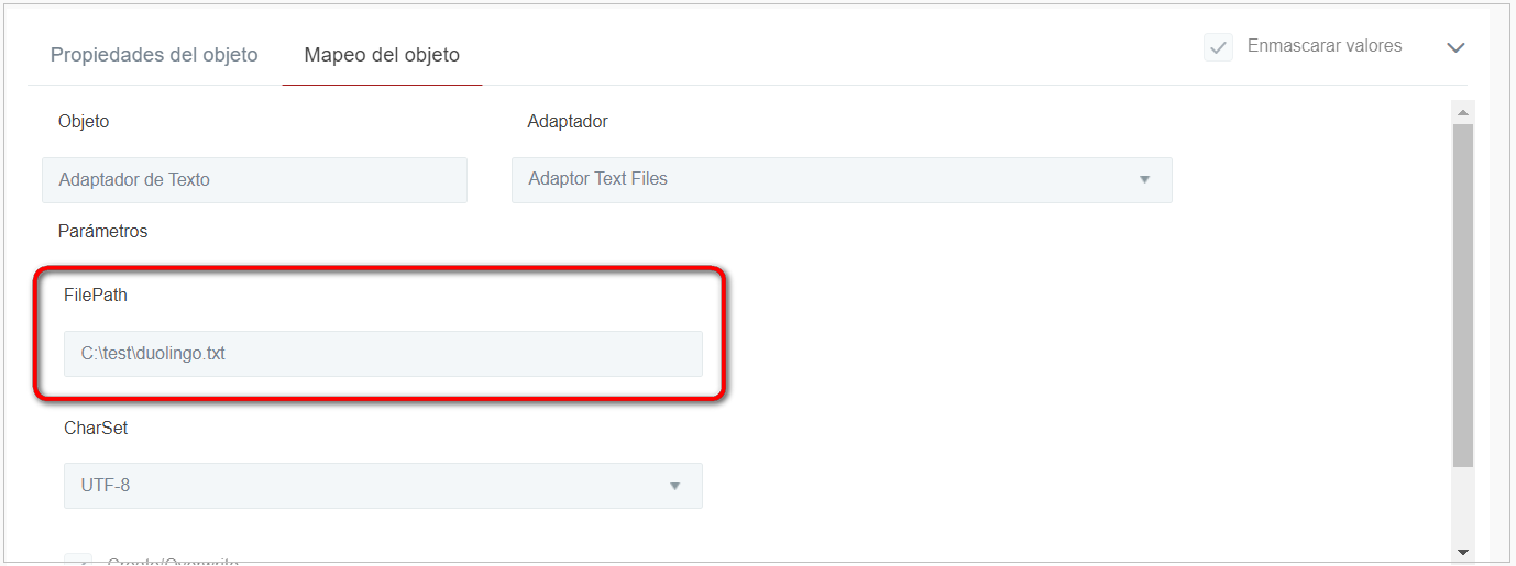 FilePath: La ruta completa, incluido el nombre del archivo representado por el adaptador en el diagrama.