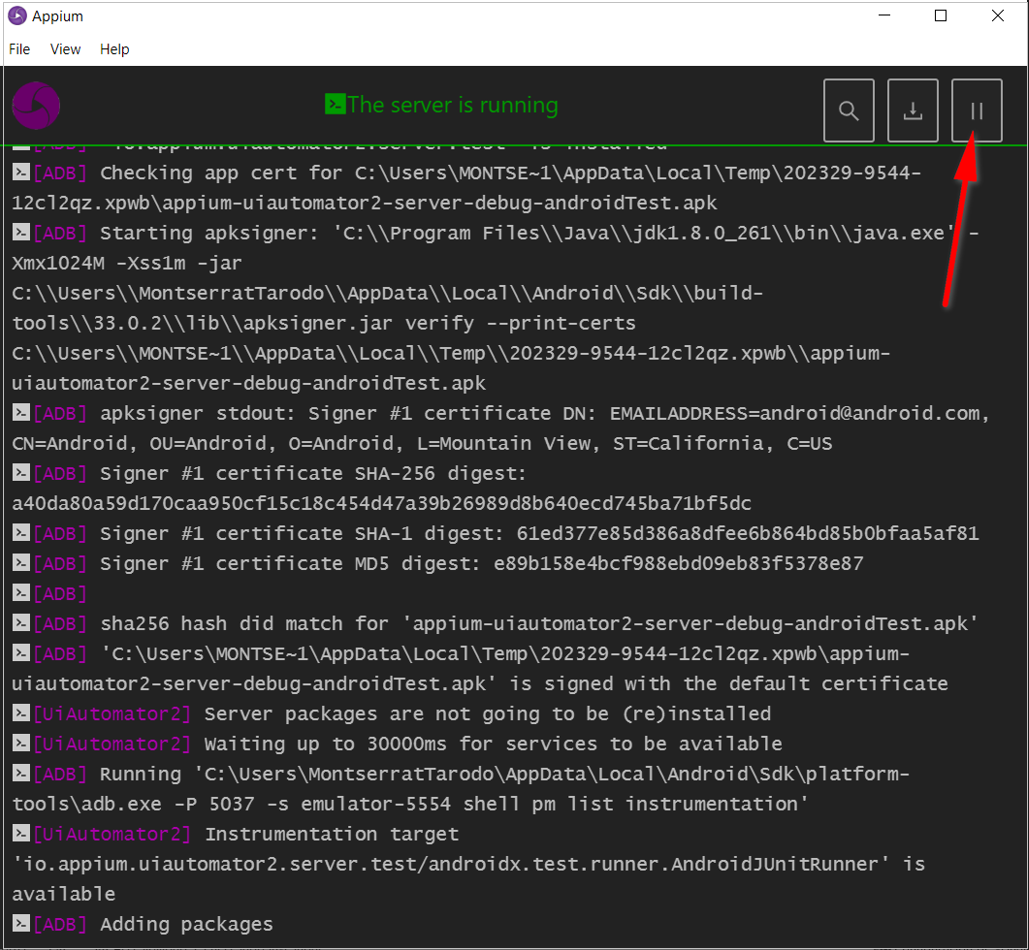 La primera es la aplicación Appium, que ahora viene en dos partes.