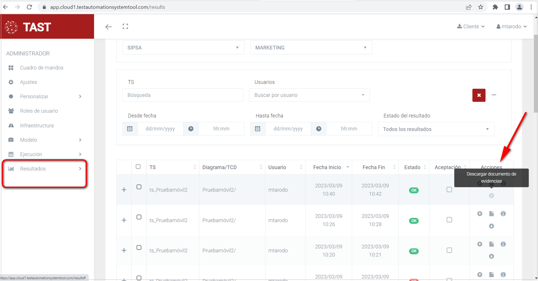 Por último, a nivel de auditoría, TAST nos devuelve los resultados en un documento Word, en el que se detallan los pasos que hemos realizado, los resultados obtenidos de cada paso, los enlaces al diagrama y al test set, si hemos dado a descargar documento en la casilla de Resultados.