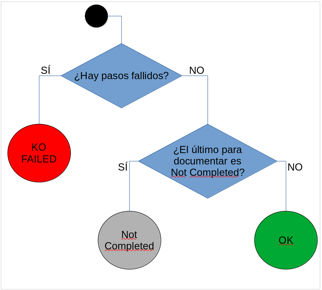 Si el resultado del diagrama es "no completado", en el cliente se verá como OK y la ejecución en verde, como hasta ahora.