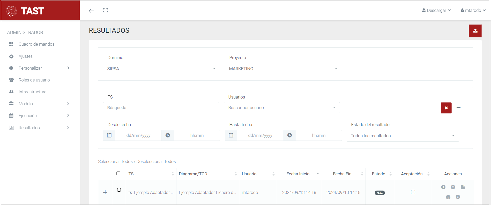 Sin embargo, en Gestión de TS se obtendrá un “No completado” en un recuadro negro y en el apartado de resultados obtendremos un “N.C.” en un recuadro negro también.