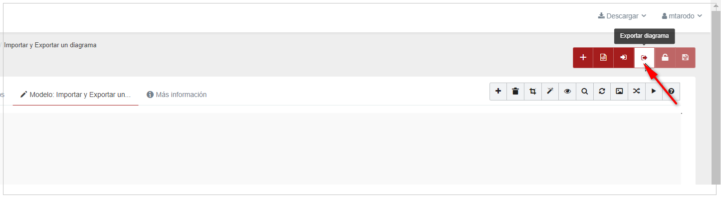 Para exportar un diagrama, el único paso que hay que seguir es ir al diagrama que se desea exportar y darle al botón de exportar, como muestra la imagen siguiente: