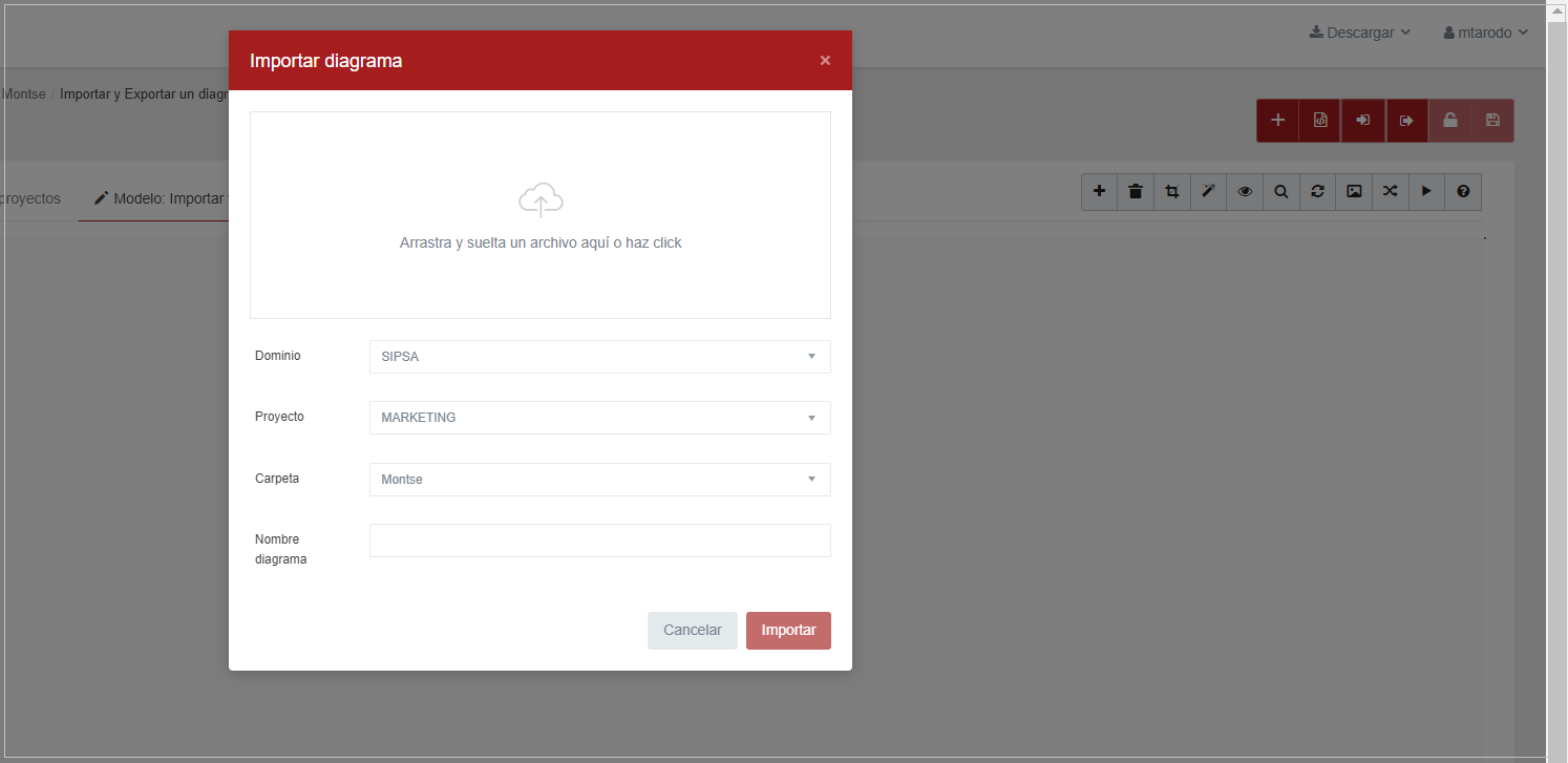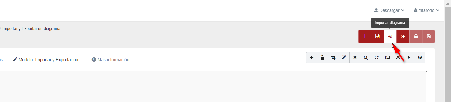 Para importar un diagrama, hay que pulsar el botón de importar como se muestra a continuación: