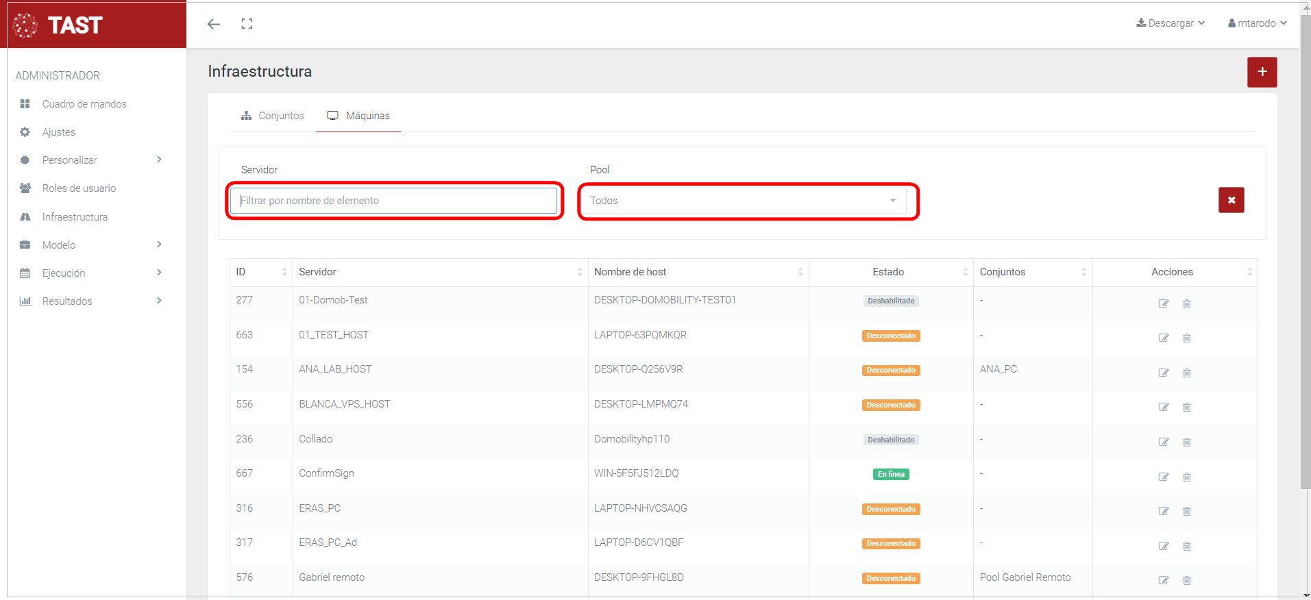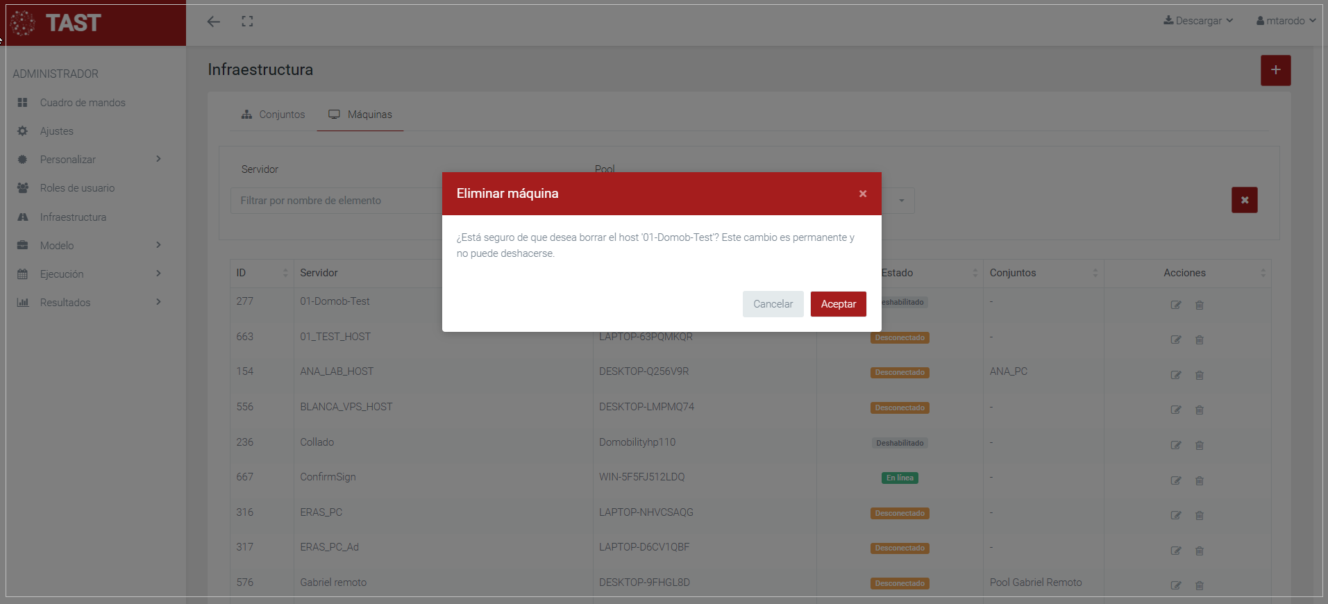 Para acceder a esta opción sólo tiene que hacer clic en “Infraestructura” en el menú de herramientas TAST.