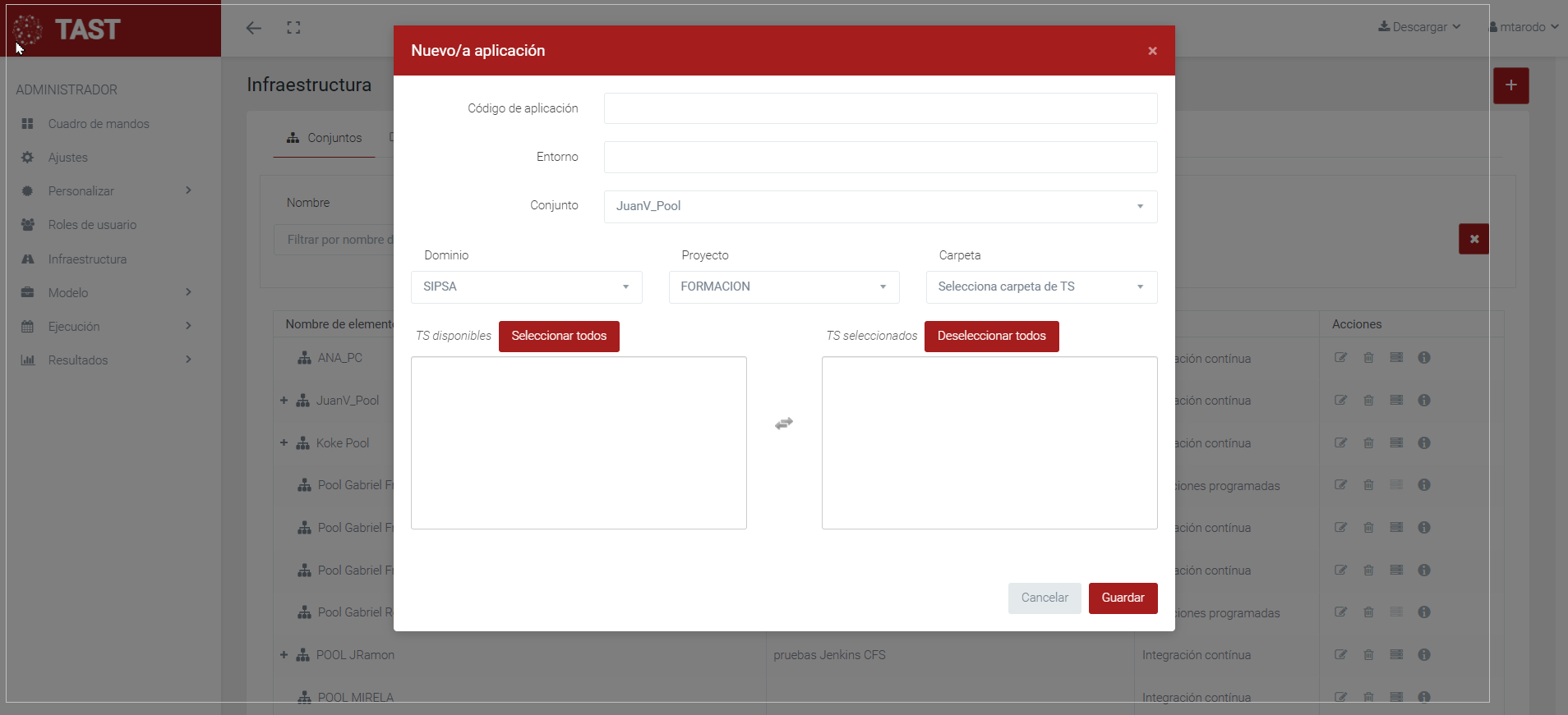 La infraestructura le permitirá definir Hosts, Pools y Aplicaciones, así como la relación entre cada uno de ellos. De esta manera, por ejemplo, podrá integrar las pruebas de regresión con el Pipeline, de modo que cada vez que se realice una nueva implementación, la prueba de regresión se pueda ejecutar automáticamente.
