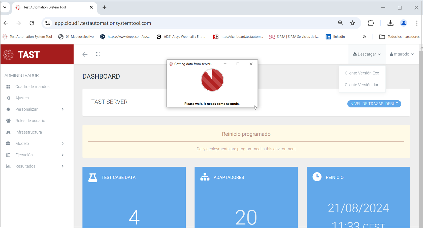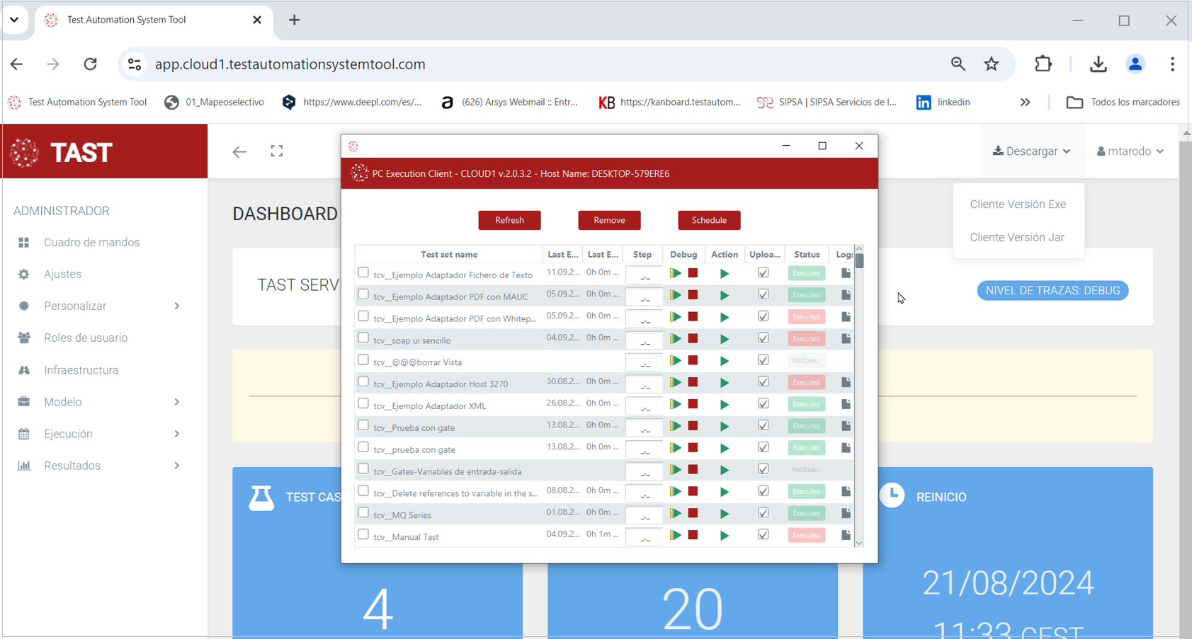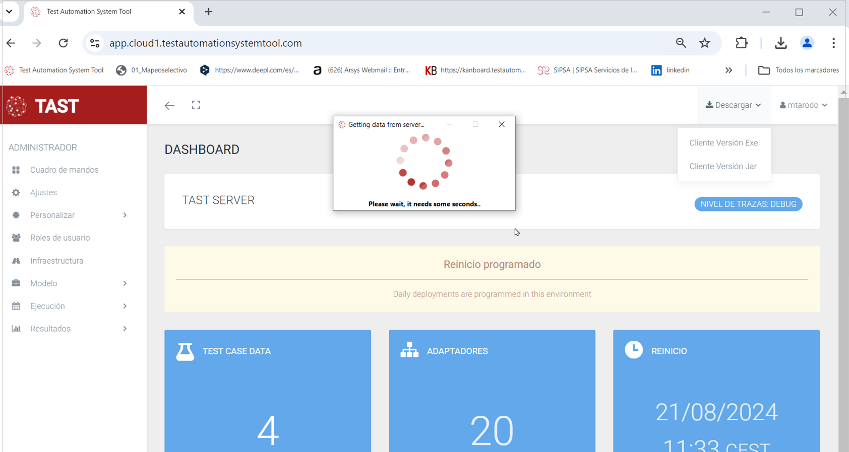 Nos damos de alta en la aplicación TAST y cuando parezca la pantalla que veis a continuación, hacemos clic en "Descargar" y elegimos "Cliente Versión Exe".