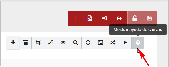 Mostrar ayuda del Canvas: aparece un modal con 3 pestañas (Atajos de teclado, Variables globales, Guía de Colores) donde se muestra la ayuda básica del Canvas.
