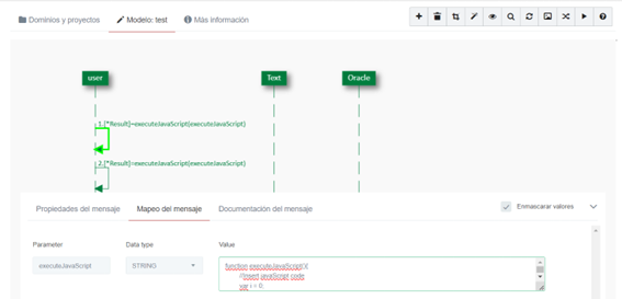 Cuando el usuario está modelando su diagrama y desea guardar el código javascript/query sql utilizado en un mensaje determinado, puede hacerlo de 2 maneras
