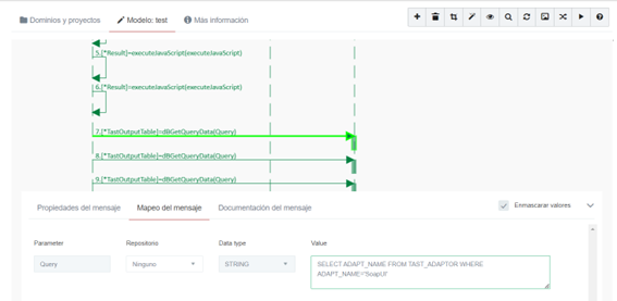 Recordar que la ventana de edición de código Javascript/Sql aparece en Modelado cuando se edita el código de mensajes tales como executeJavascript, o dbGetQueryData, por ejemplo.
