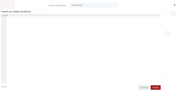 Haciendo clic sobre este campo, se expande y nos lleva a una ventana modal con el editor de código especial para introducir código Javascript o Sql.
