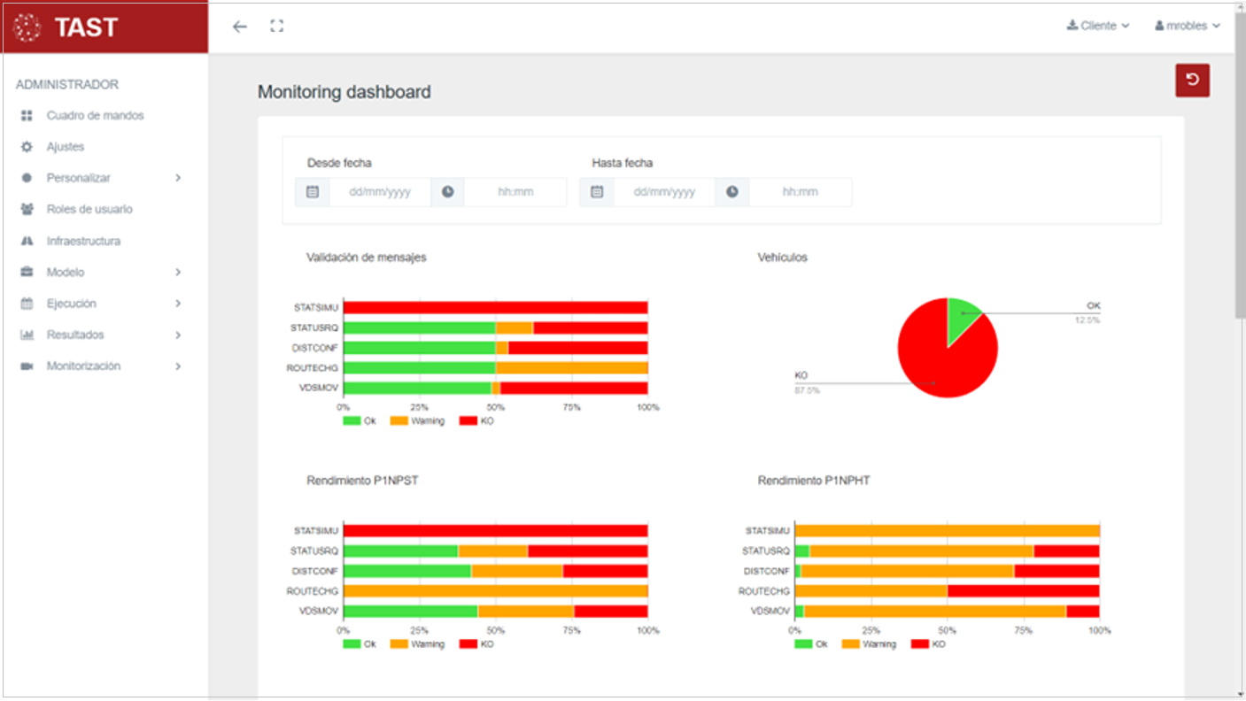 El gráfico de vehículos representa el número de vehículos con y sin errores de validación para el filtro aplicado. Clicar en este gráfico no tiene ningún efecto.