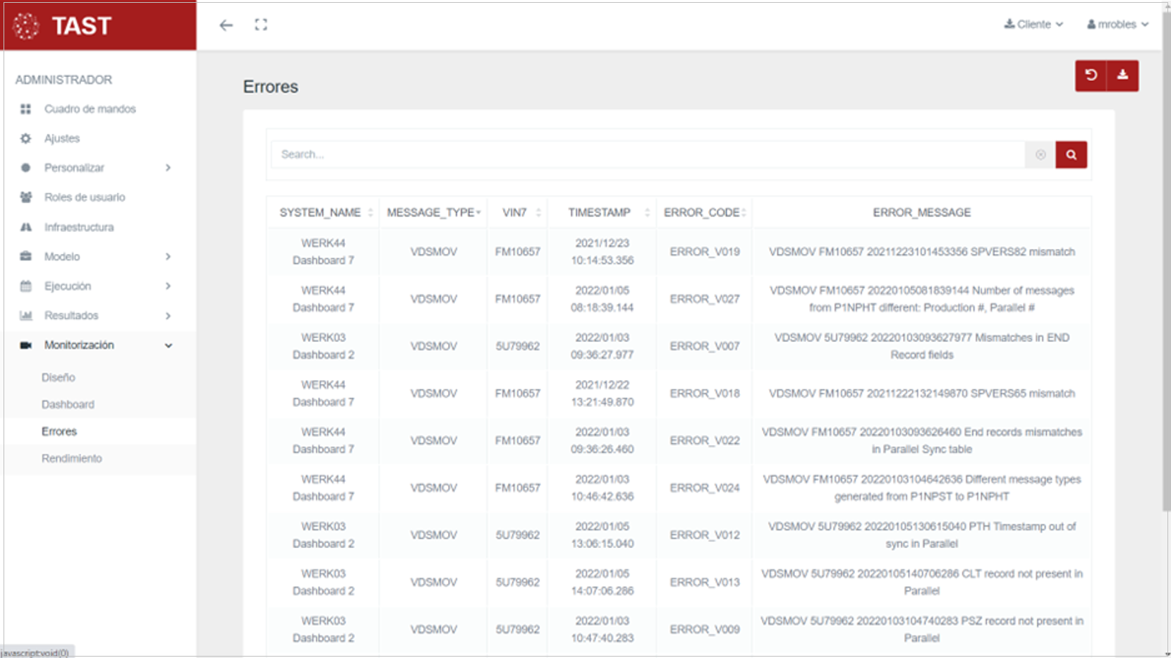 Esta funcionalidad está disponible sólo para aquellos clientes que necesiten monitorización de la producción.
