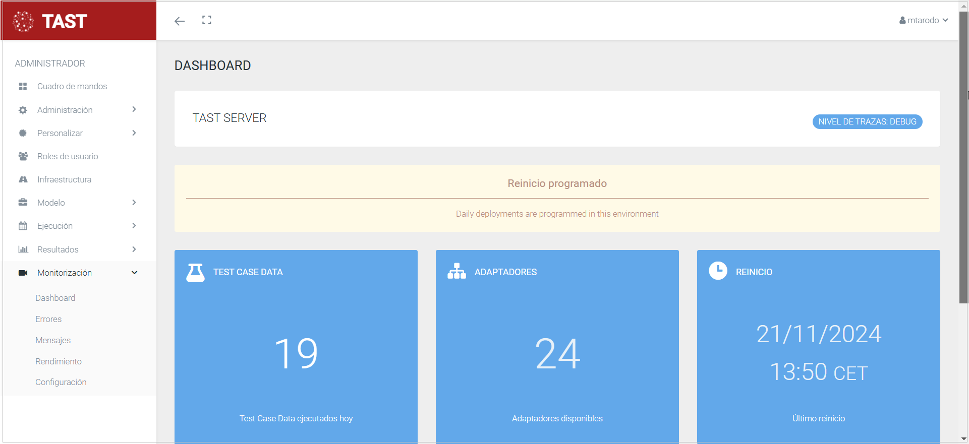 El menú de Dashboard es una opción dentro de TAST. Se puede acceder desde la navegación de la izquierda haciendo clic sobre Monitorización y seleccionando Dashboard.
