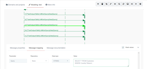 Remember that the Javascript/Sql code editing window appears in Modeling when editing code in messages such as executeJavascript, or dbGetQueryData, for example.