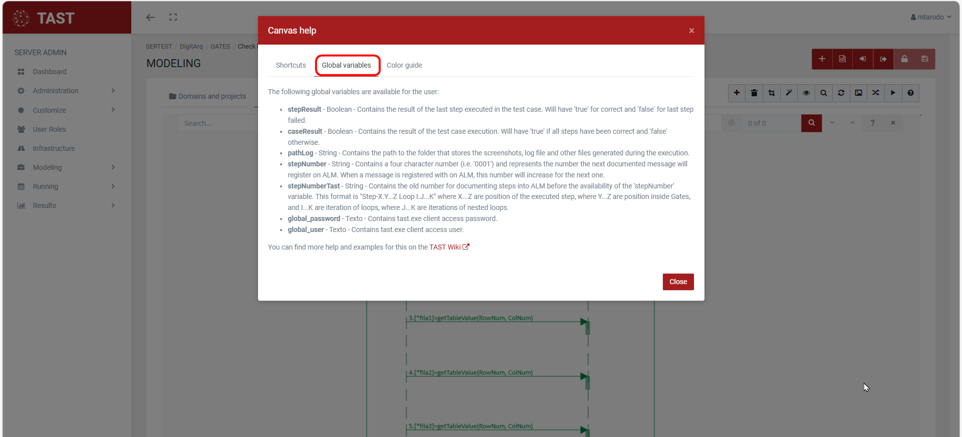 - “Global variables” Tab.