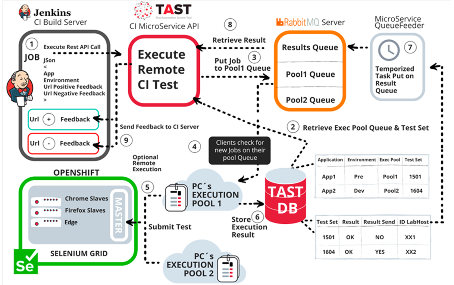 TAST-CI MicroService API: Allocated in the TAST server will make possible to publish the methods for executing and providing results to Jenkins.